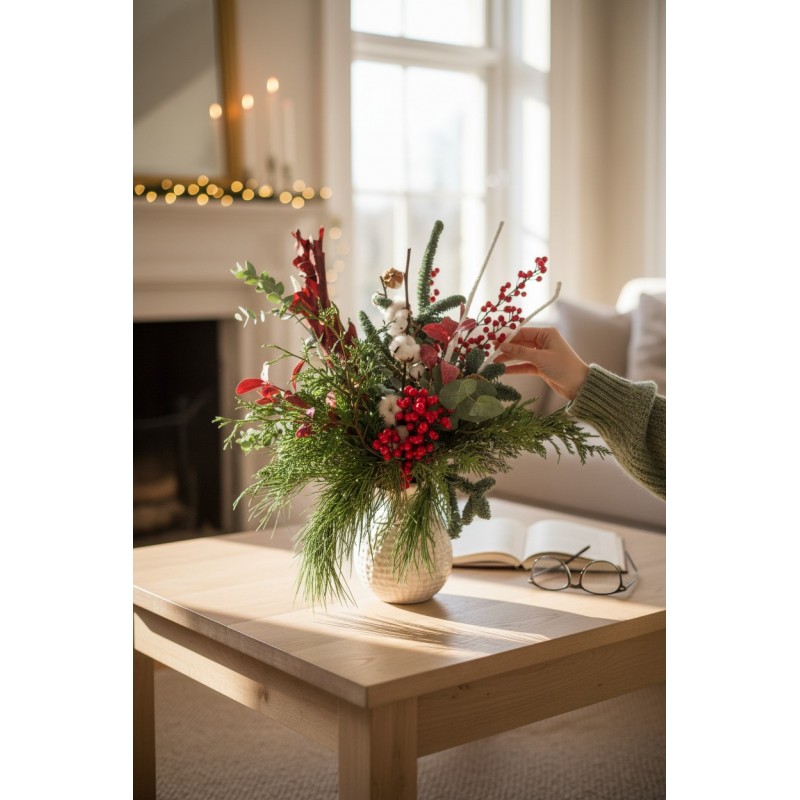 ¿Buscas un ramo original para estas Navidades? Con Bosque Navideño sorprenderás a todos! Es mucho más que un ramo natural navideño decorado en tonos rojos. Para aquellos que huyen del clásico centro redondo, es perfecto para cualquier rincón en un jarrón! Jarrón no incluido.