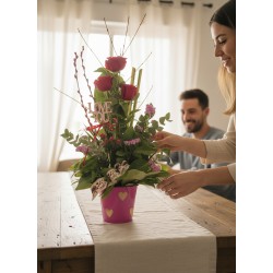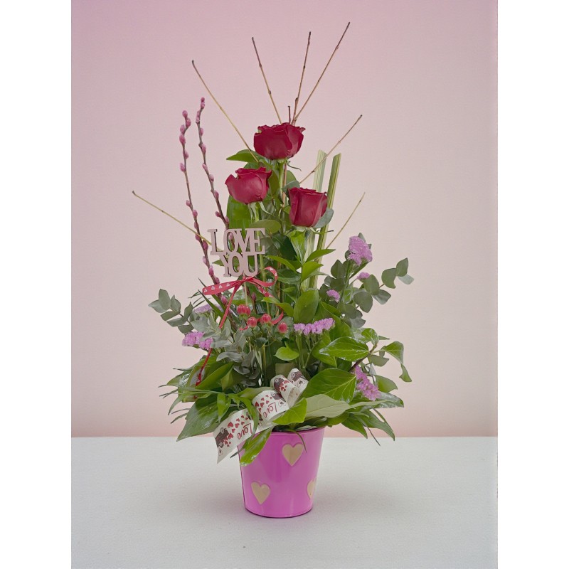 Se presenta en un macetero fucsia con estampado de corazones.
